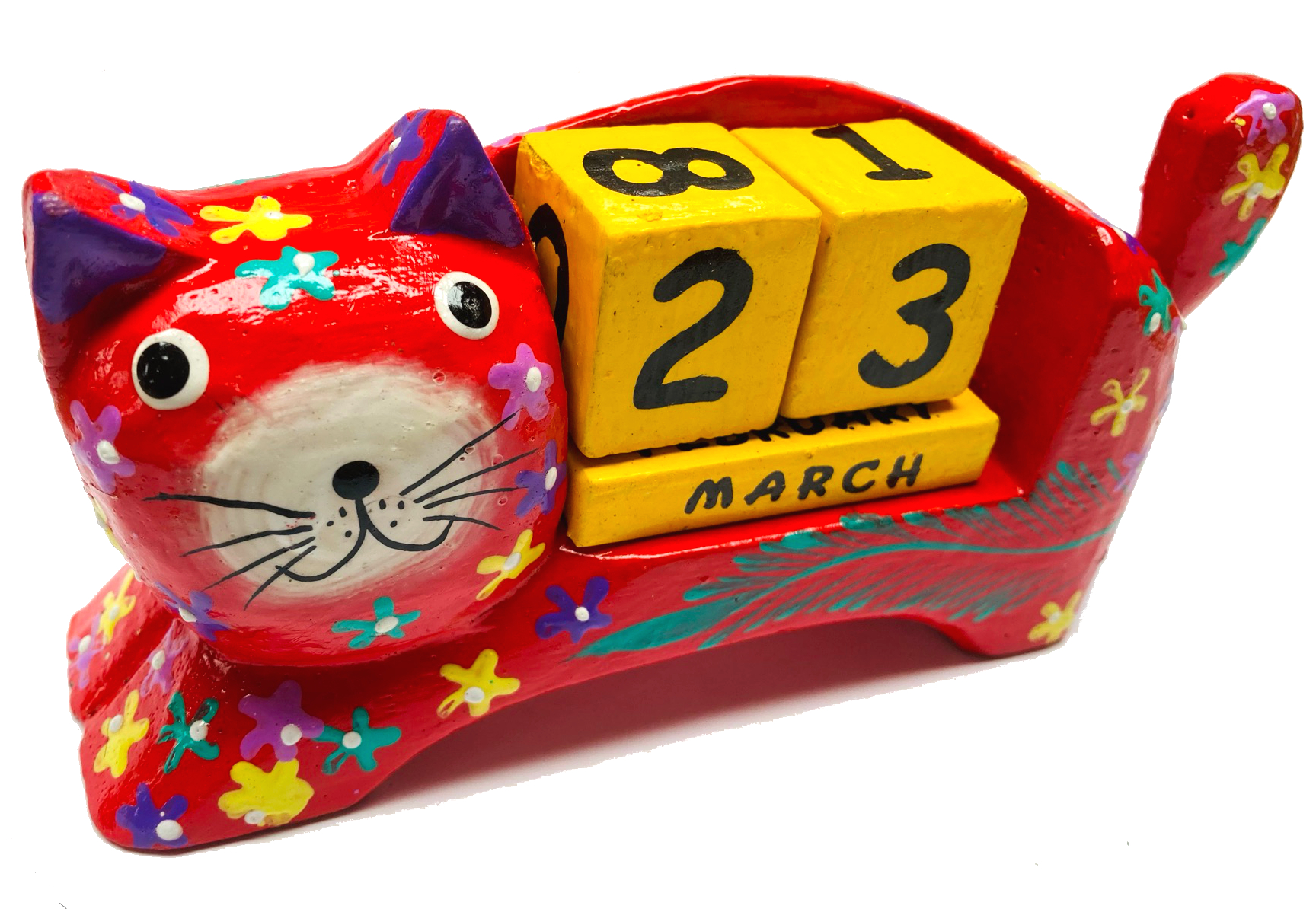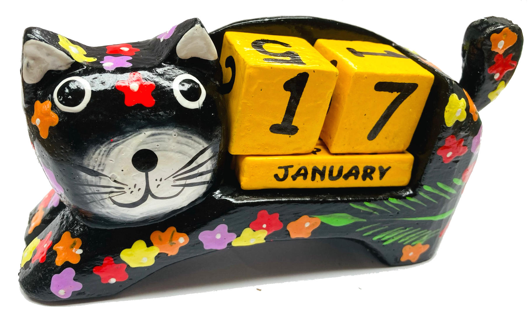 Fair Trade Perpetual Wooden Cat Calendar