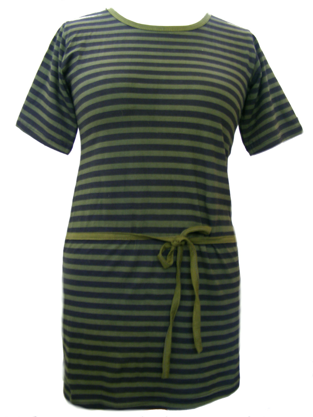 100% Cotton Classic Black & Green Stripey Dress - Fair Trade