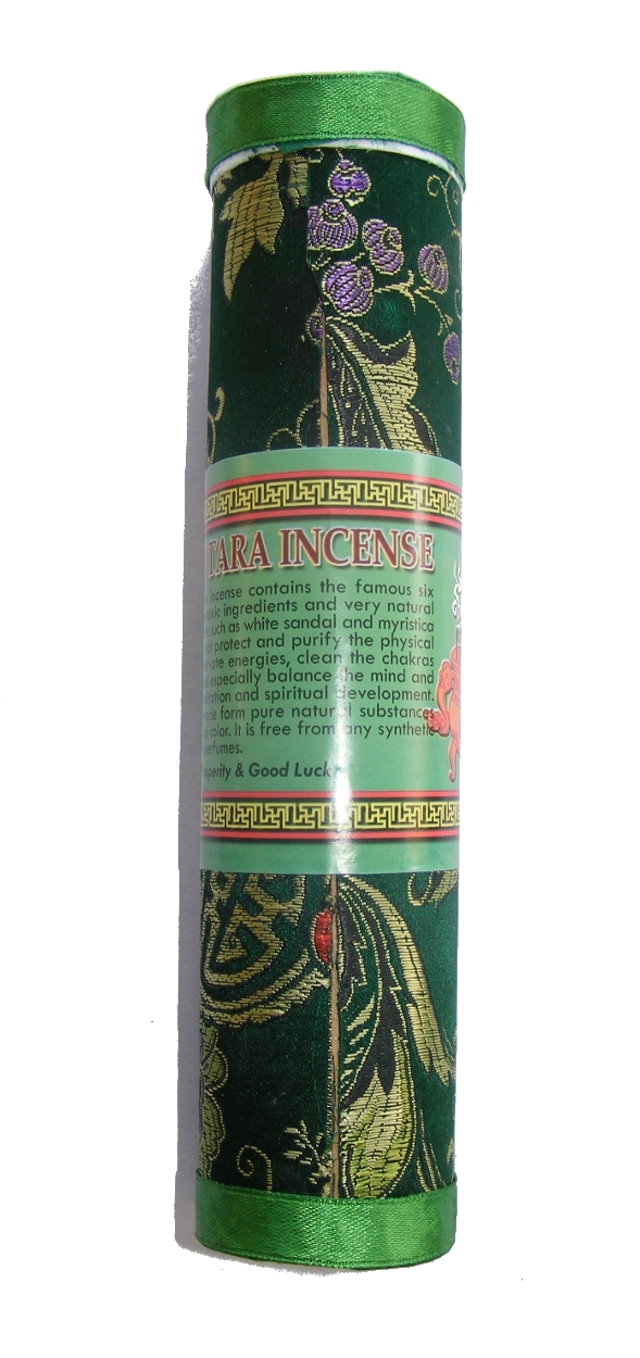 Our Bhutanese Green Tara Incense is an ancient incense that is used to protect and purify the physical organs, it energises and clears the chakras and balances the mind. It is used in meditation and spirtual development. It is prepared by an experienced Bhutanese Doctor following procedures laid down in the Tibetan Medical Book.