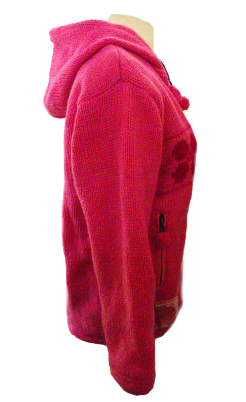Fleece Lined Dark Pink Daisy Handknitted Woollen Jacket - Fair Trade