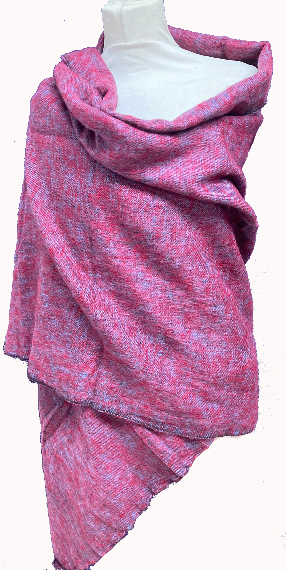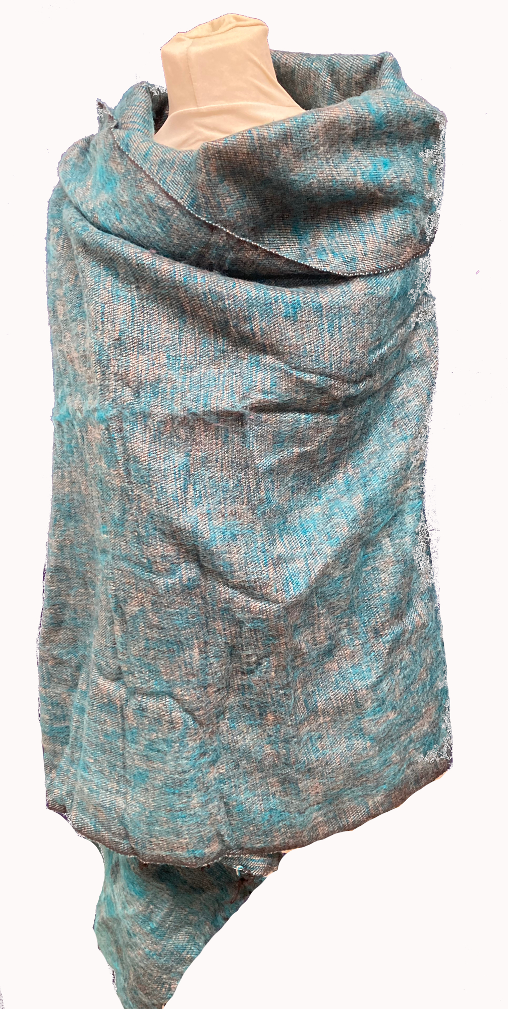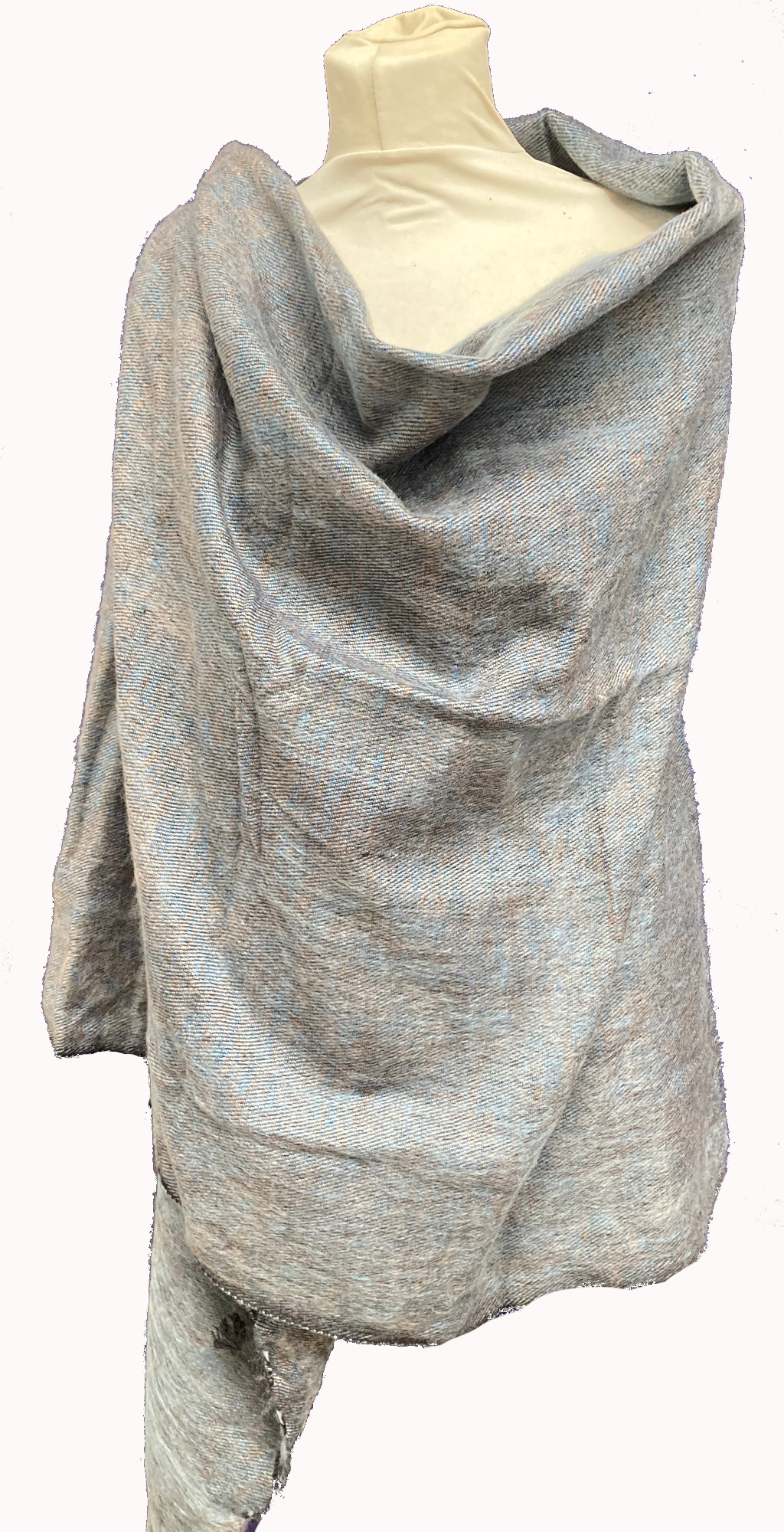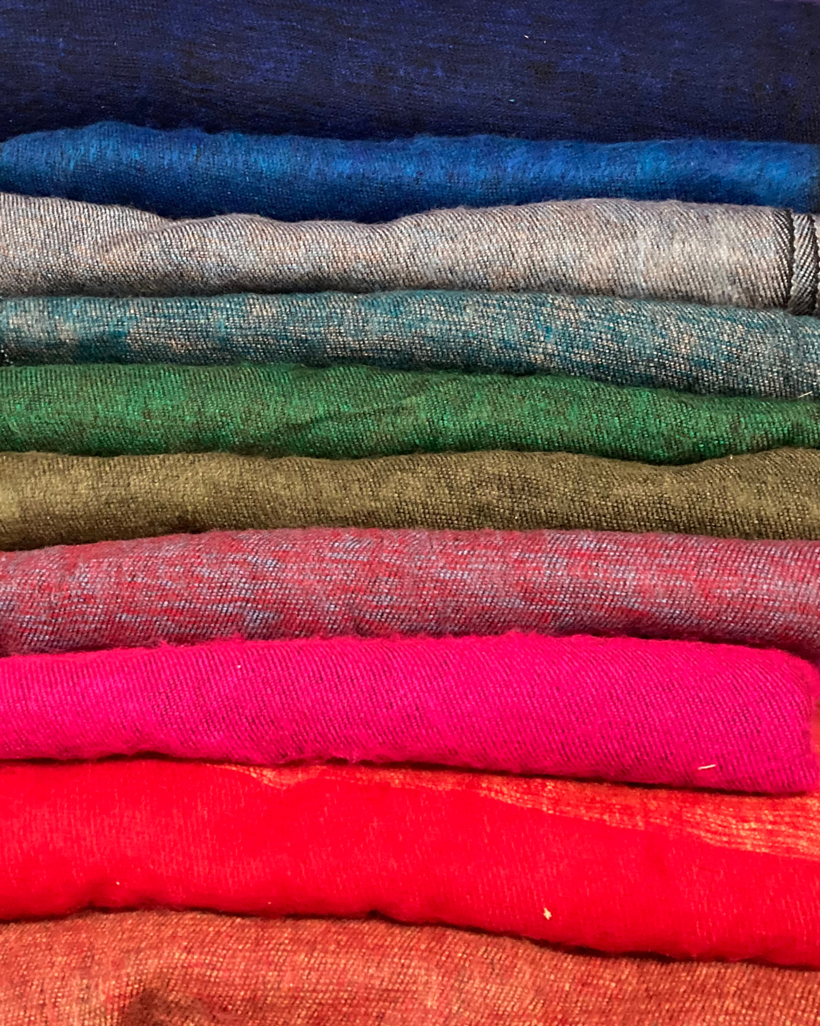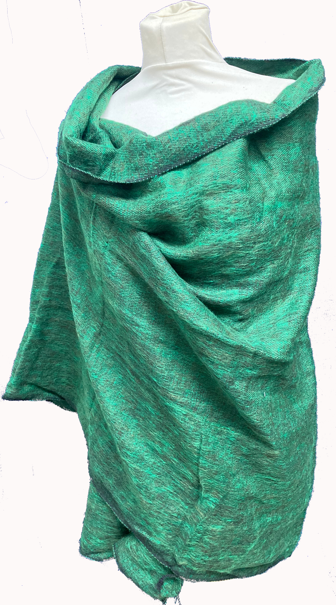 They are handloomed up in the Himalaya by our lovely fair trade producers. The shawls are made from two different colour wools, the weft and the weave are different colours so the colour of the shawl change subtly as direction and intensity of the light changes.
