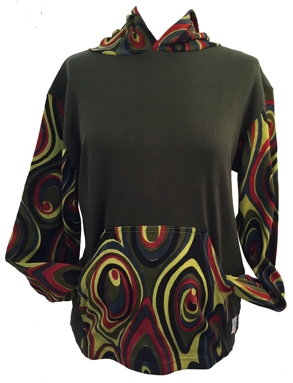 Our Jersey Cotton Retro Spiral Ladies Hoodies are inspired by the Psychedelic Era of the late 1960/ early 1970 when people come together in a spirit of Loving Awareness to break down barriers and question the Status Quo.